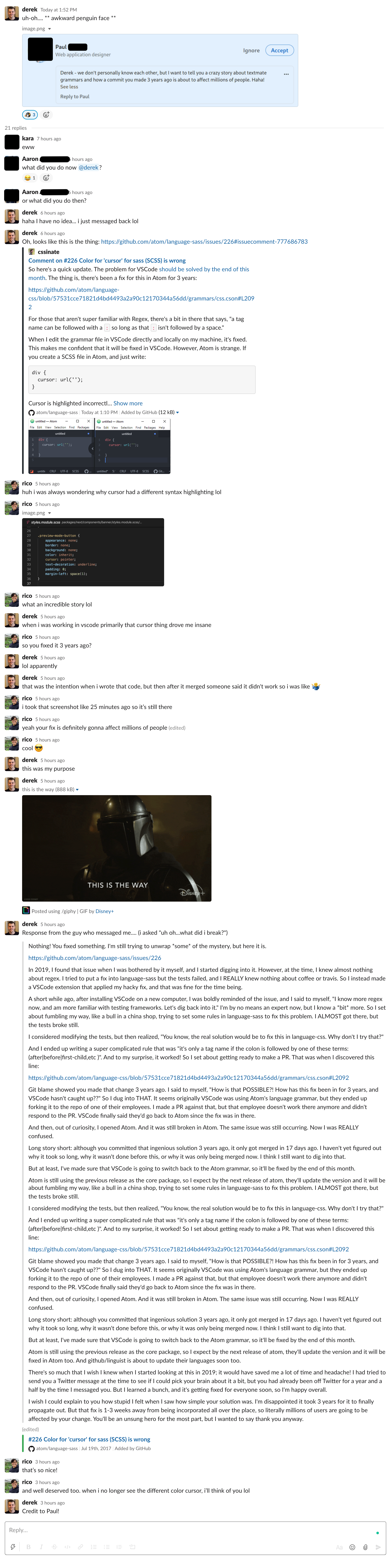 My coworker fixed that vscode CSS cursor bug 3 years ago